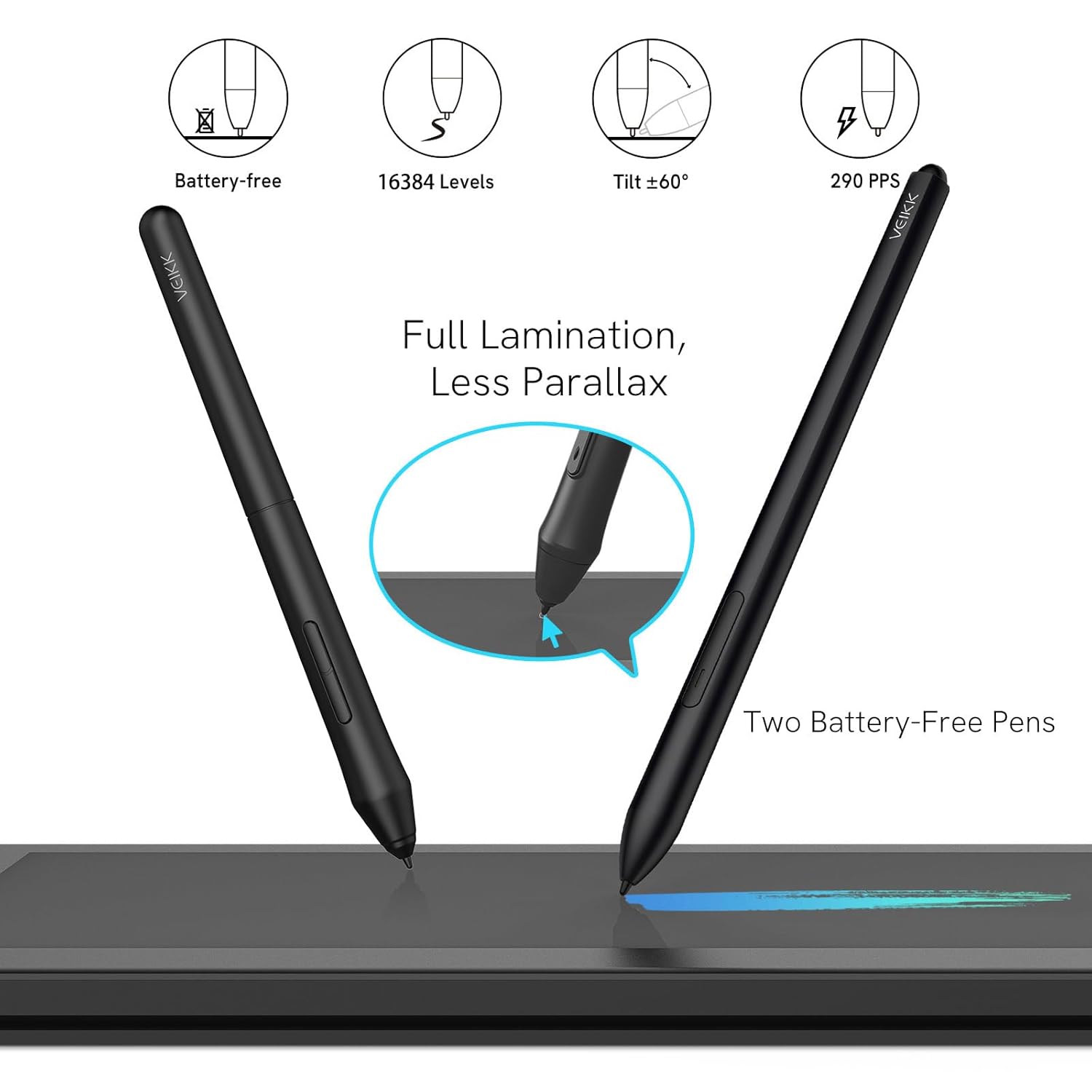 - 【16K levels Pen Pressure】 The studio 16 drawing tablet with screen adopts the groundbreaking 16K pressure sensitivity levels and 60° tilt recognition, delivers smooth, naturally,accurate drawing experience.With two pens included (one slim and one thicker) designed for different hand sizes, it ensures a perfect fit for everyone
