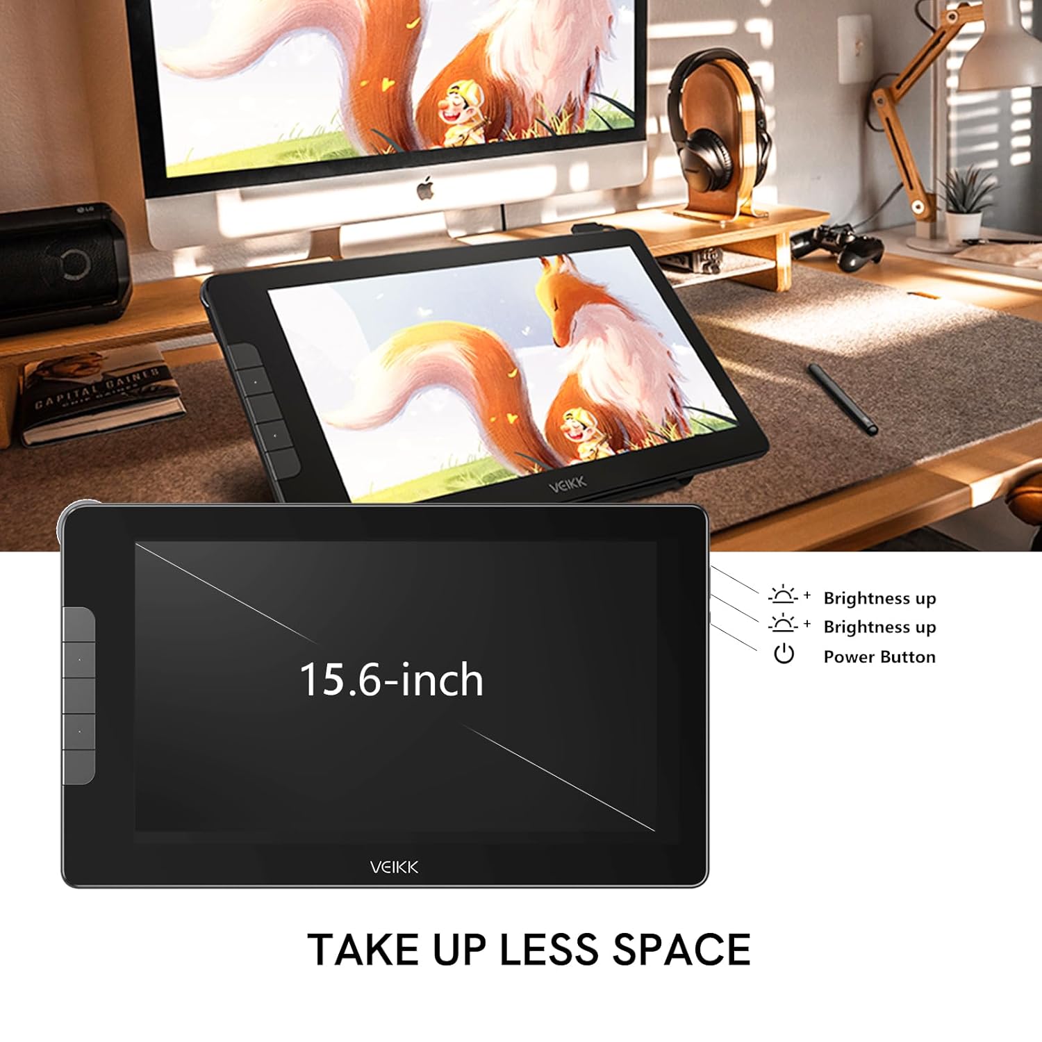- 【 Vivid 125% sRGB Colour Display】The studio 16 pen display equipped with 15.6 inch 1920×1080 high-definition resolution 125% sRGB color gamut screen, provide vivid images and bright colors.Full laminated screen combining the glass and screen seamlessly.This ensures the accuracy of the cursor position and the lowest parallax,feel like drawing on paper . With a 178° wide viewing angle and 5080 LPI resolution, it ensures exceptional color accuracy and rich detail reproduction