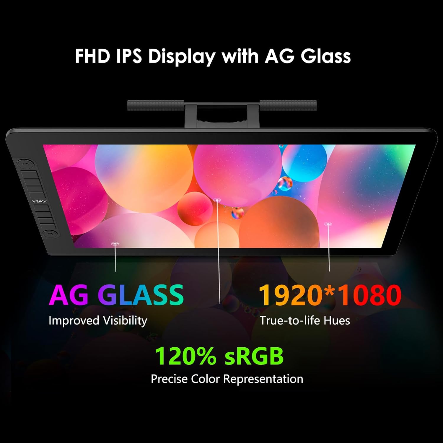 - 【21.5-Inches HD Full Laminated Screen】-See more details on this pen display.The VK2200PRO drawing monitor with a large 21.5 inch full laminated screen which has no parallax and reduces reflection,this ensures the accuracy of the cursor position and the lowest parallax. Resolution 1920×1080 Full-HD IPS screen,see your creations in vibrant color on this Pen Display (16.7 million colors, 92% NTSC/120%sRGB).NOTE: VEIKK VK2200PRO drawing monitor must be connected to a device to work.
