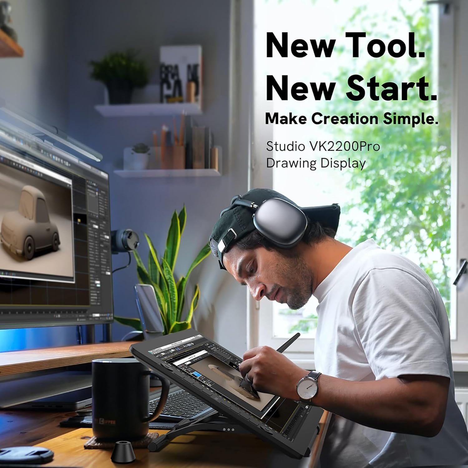 - 【Dual-head USB-C Design&Slim Body&Adjustable Stand】-Unlike typical pen displays,VK2200PRO drawing monitor is more thinner,thinkness only 17mm. Support USB-C to C design allows connection to other devices without an adapter. With the included adjustable stand, adjust from 15°-85°angle,very comfortable to use.
