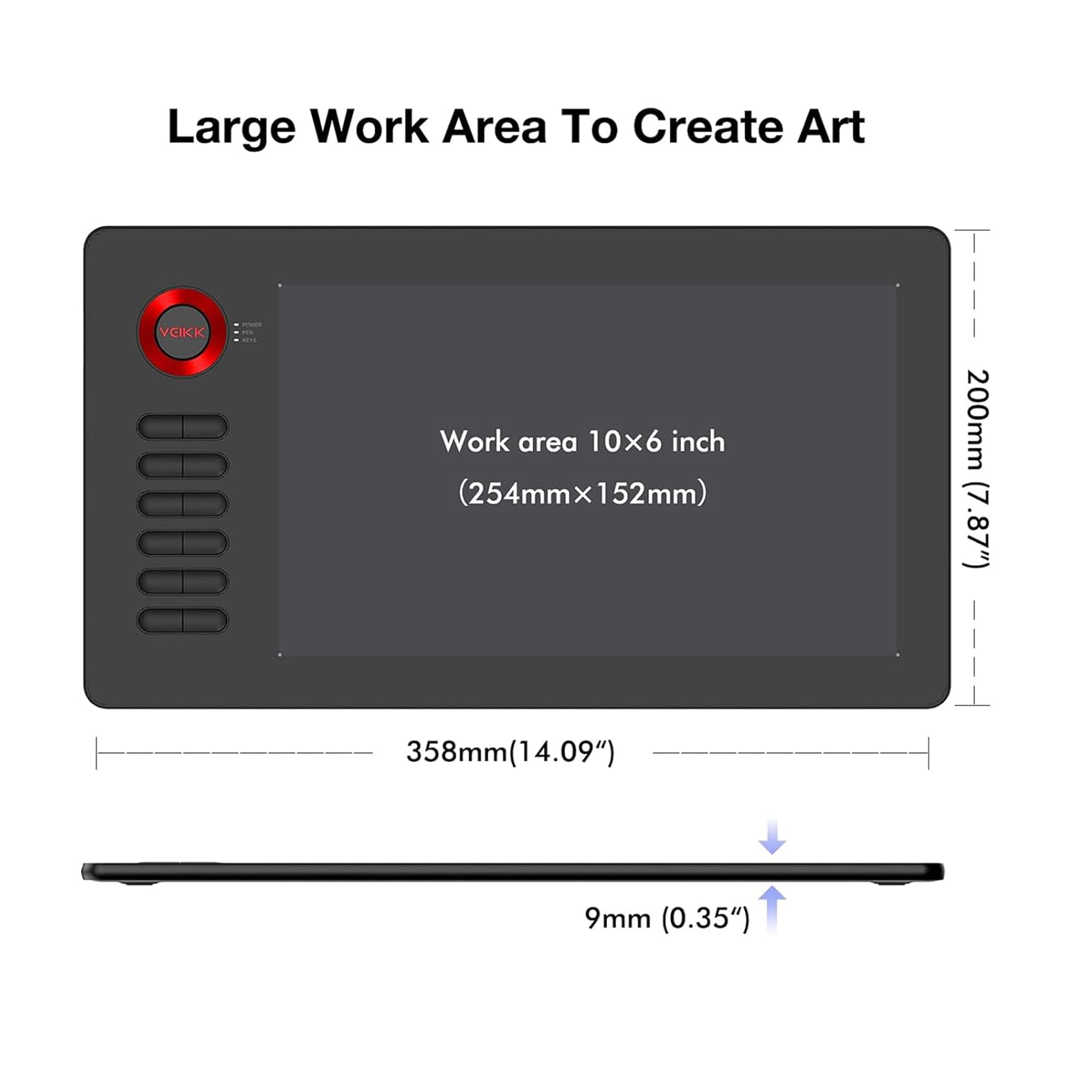 • 【Large Working Area】VEIKK A15 Graphic tablette features a 10 x 6 inch large active area, providing you with enough space to express your creativity. The working area can be enlarged or reduced as needed through the driver, such as when playing games like OSU. Additionally, VEIKK offers a 1 year hardware and lifetime technical support for all VEIKK pen tablets.