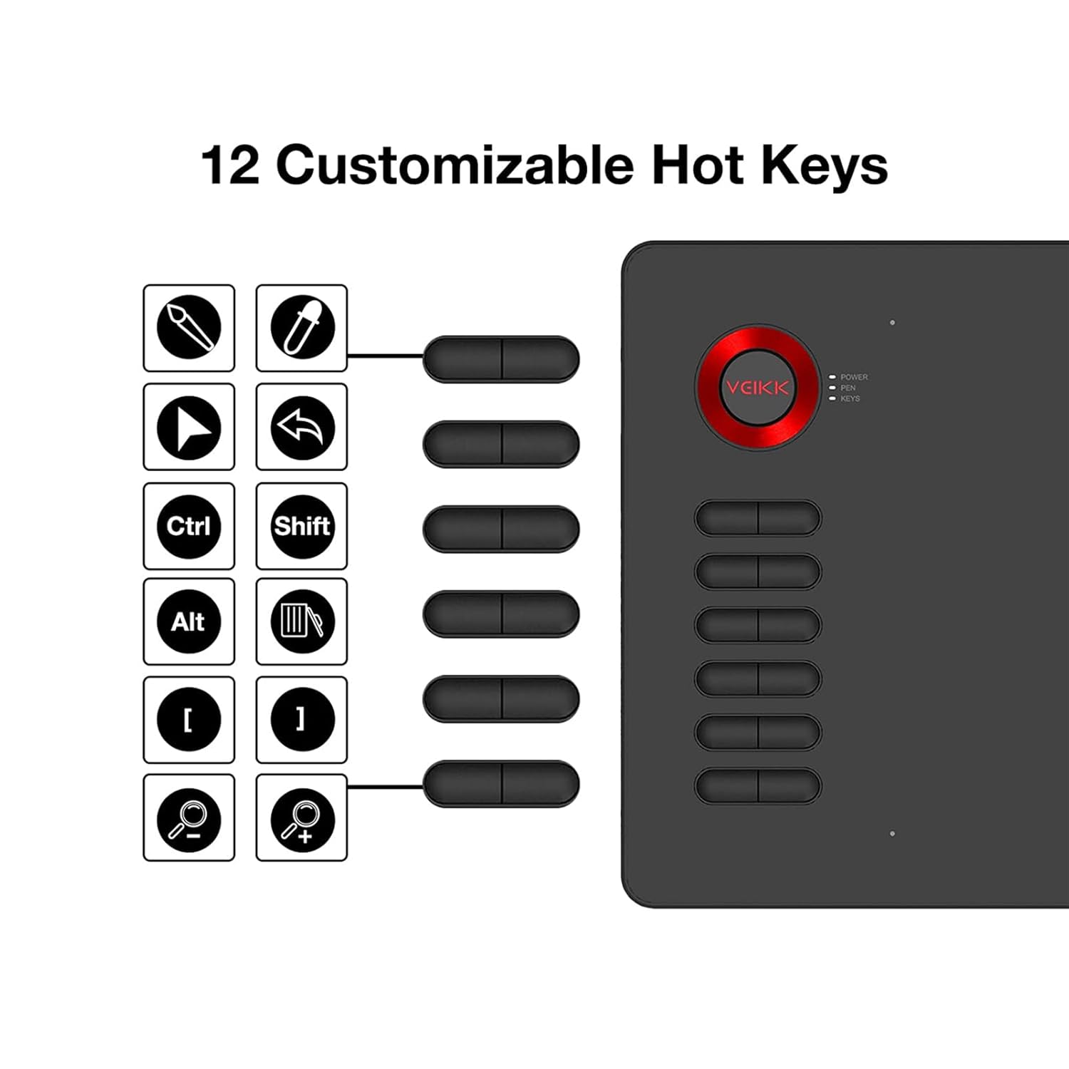 • 【Customizable Shortcut keys】12 express keys can be fully customized through the driver according to different software or painting habits, making the tablet a more efficient tool for working. The VEIKK A15 graphic tablet is designed for both right and left-handed users, and can be quickly set up on the VEIKK writing tablet driver interface.