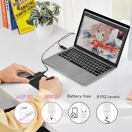 - 【High Performance and Precision】With a report rate of 290 PPS, the VK430 OSU tablet offers quicker and smoother line control. The P05 battery-free pen ensures uninterrupted play, perfect for playing OSU. With 8192 levels of pressure sensitivity, it can accurately identify subtle strokes and determine the precise mouse position